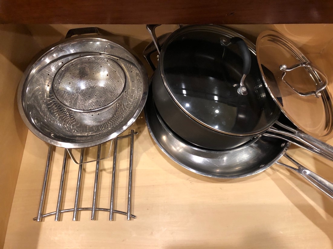 お鍋やフライパン、ザルなどもあり、調理するには困ることのない品揃えでした。