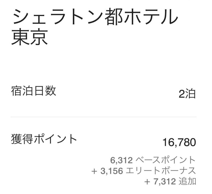 2日分宿泊したうち、今回は上記のポイントが加算されました。