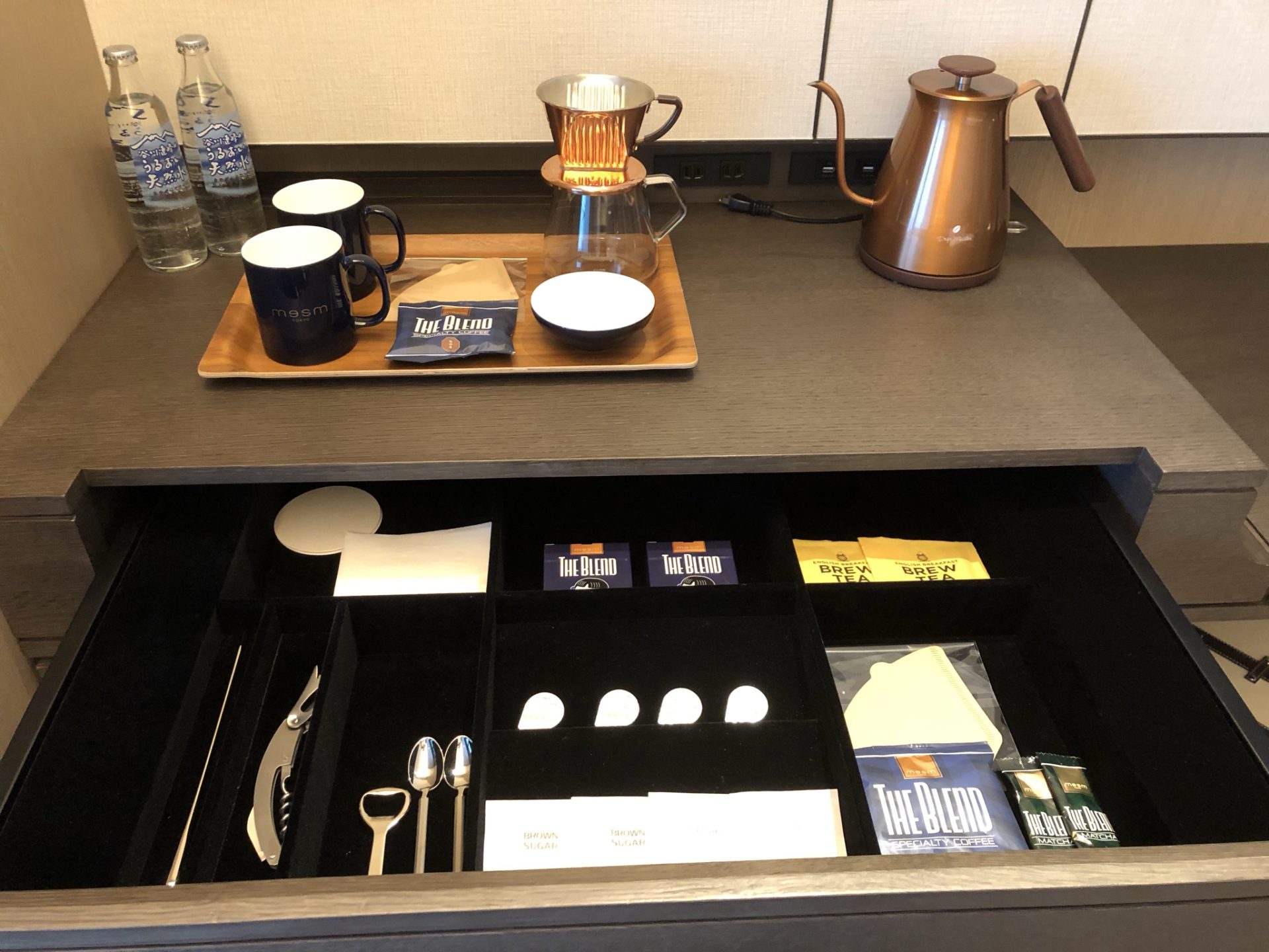 ホテルによっては1つの場所にたくさんアメニティが置いてあって、移動させたり片づけたりが大変になるのですが必要なものだけが各所にあるのは良いと思います。