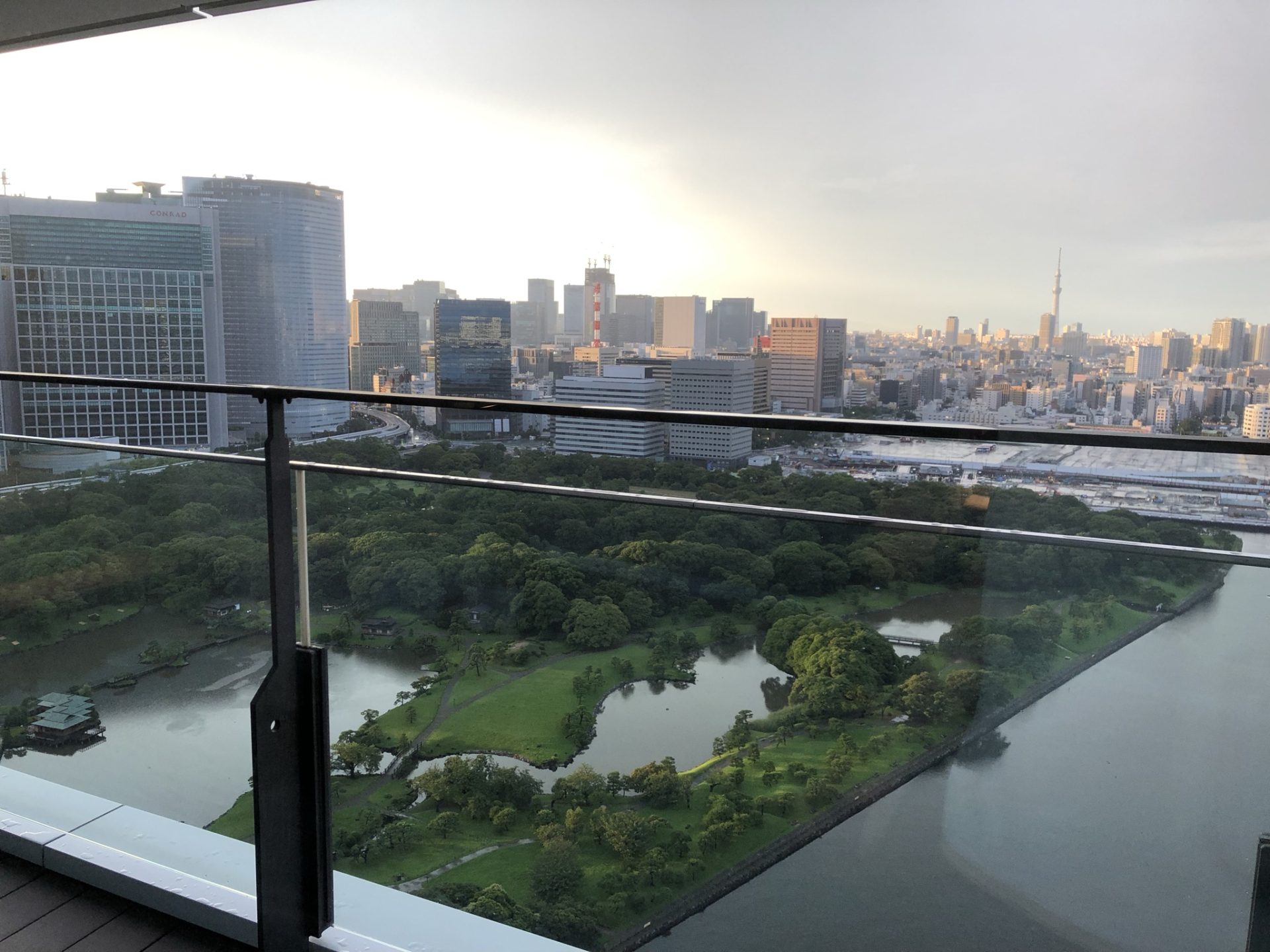 このバルコニーでお酒をたしなみつつ浜離宮を眺めるのも中々できない優越感だと思います。